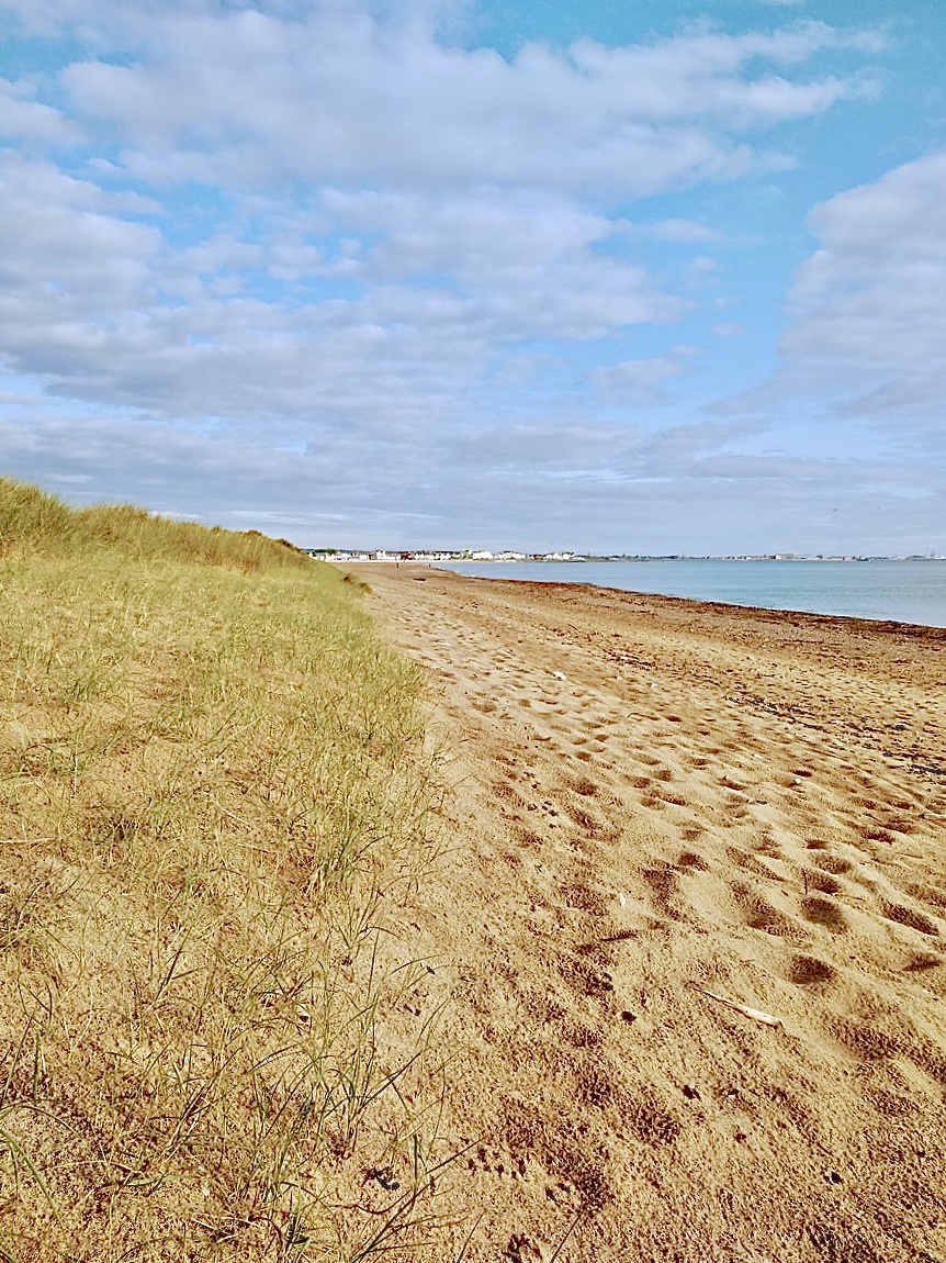 They went and had a look up in the dunes , after Stubborn Dog had shook himself from nose to tail. They headed back as the beach began to fill with joggers, walkers and dogs. Beach Buoy placed the beach clean into the bin on the promenade, then rested on the wall. Stubborn Dog sat up on the wall. Beach Buoy made notes in his book and in his head. He pondered at all the different reasons people come to the beach for. A blonde lady and a bald man headed for the water's edge. A man dressed for trench warfare scanned the beach with his metal detector, looking to cash in on someone's misfortune and slide the finds into his camouflaged bag. A lady litter-picked as her little dog walked nearby. Cyclists and joggers had chosen the promenade as their venue. One of the Cyclists gave out a loud noise as he approached. It sounded like he had been shot. It was a sneeze. He must have been shot with a pollen bullet?