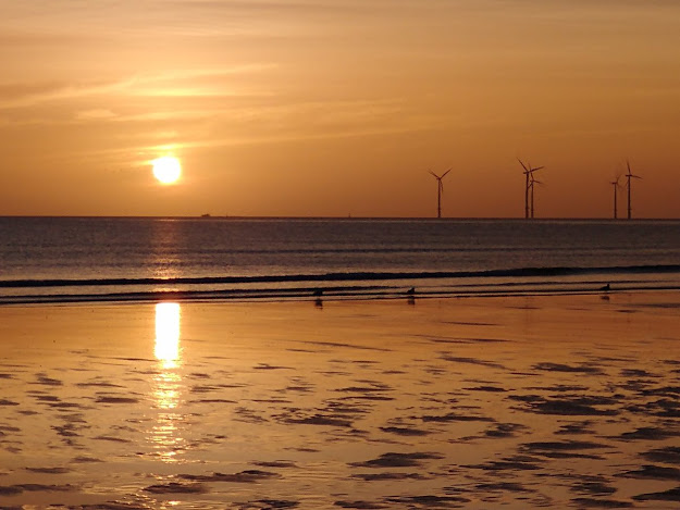 Sunrise came at 6-33. Within minutes a family of four who had been waiting at the water's edge for the spectacle were on their way home; photos taken. |