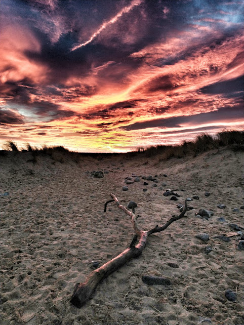 Dune driftwood that had glowed orange minutes earlier was cold and grey.