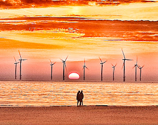 The blades of the wind turbines spun slowly.